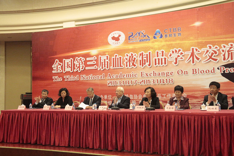 2013年10月17-18日,由中國(guó)輸血協(xié)會(huì)血液制品工作委員會(huì)主辦、《中國(guó)輸血雜志》編輯部協(xié)辦、山東泰邦生物制品有限公司承辦的全國(guó)第三屆血液制品學(xué)術(shù)交流會(huì)在山東泰安成功舉行,大會(huì)開(kāi)幕式由中國(guó)輸血協(xié)會(huì)副理事長(zhǎng)孫紹忠主持,中國(guó)輸血協(xié)會(huì)理事長(zhǎng)朱慶生、山東省衛(wèi)生廳副廳長(zhǎng)邱楓林、泰安市衛(wèi)生局局長(zhǎng)劉煥星、中國(guó)輸血協(xié)會(huì)副理事長(zhǎng)單藕琦、中檢院生物制品研究所所長(zhǎng)沈琦、中國(guó)輸血協(xié)會(huì)血液制品工作委員會(huì)主任委員鄒漢武等領(lǐng)導(dǎo)出席了會(huì)議,來(lái)自美國(guó)的專(zhuān)家、學(xué)者以及來(lái)自各血液制品公司、單采血漿站、各血液制品研究單位等77家單位近200余位會(huì)議代表參加了本屆學(xué)術(shù)交流會(huì)。