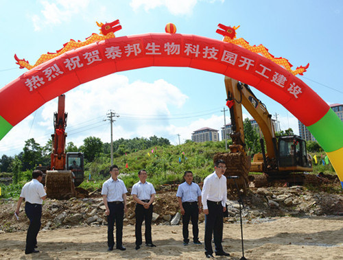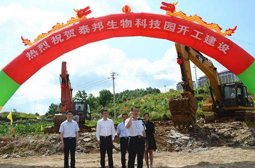 2017年6月8日上午,貴州泰邦舉行了簡(jiǎn)短而隆重的“泰邦生物科技園”動(dòng)工儀式。花溪區(qū)委常委、副區(qū)長(zhǎng)韓匡時(shí)、區(qū)園區(qū)辦副主任徐國(guó)敏、區(qū)工信局有關(guān)領(lǐng)導(dǎo)出席了動(dòng)工儀式,公司常務(wù)副總經(jīng)理劉欣晏、副總經(jīng)理陳云華、財(cái)務(wù)行政總監(jiān)李云鵬、工程動(dòng)力總監(jiān)劉詩(shī)平及員工代表參加了儀式,儀式由劉詩(shī)平總監(jiān)主持。